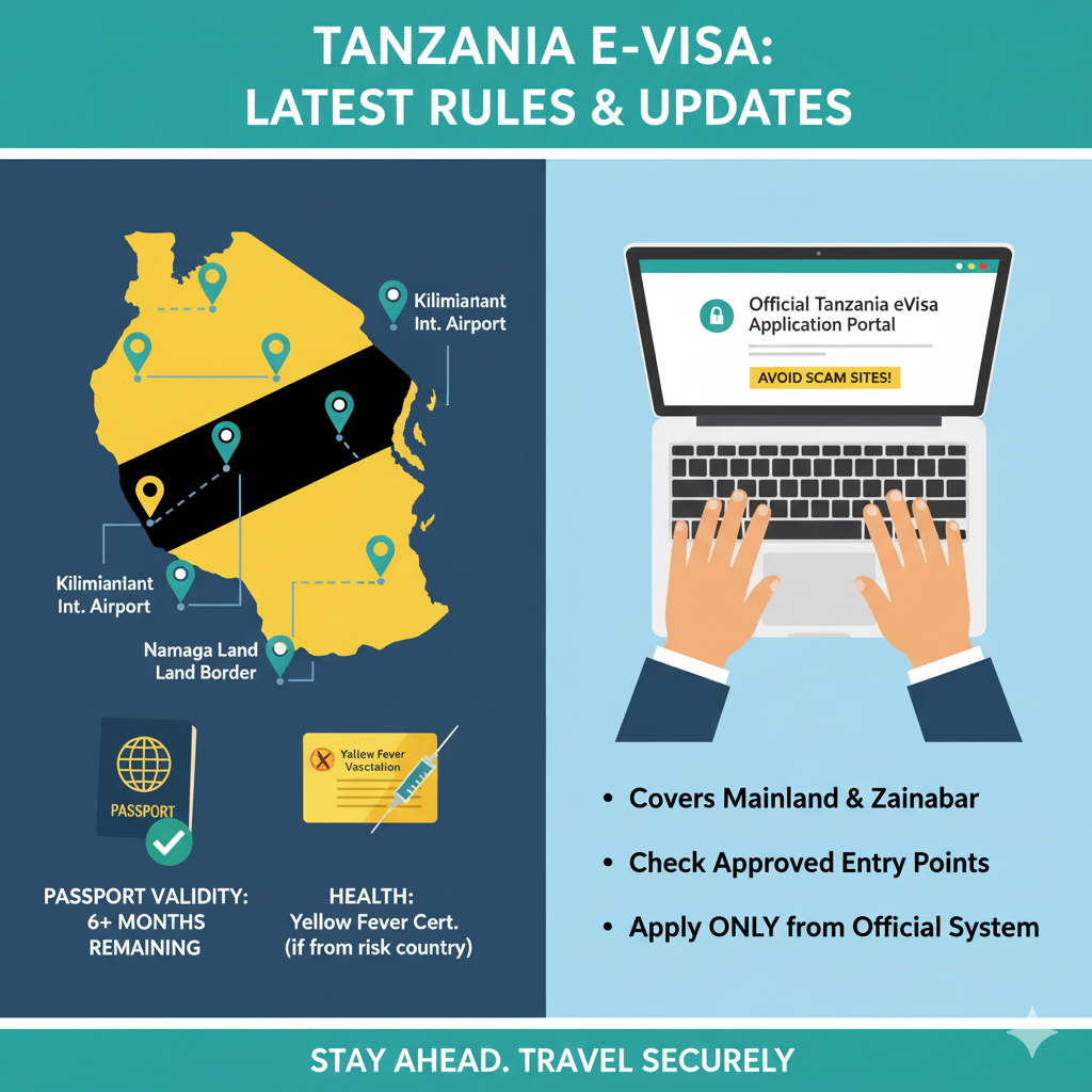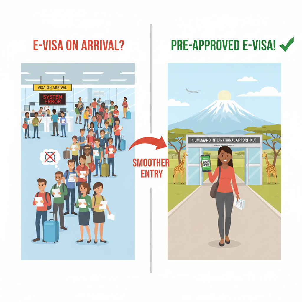 You can enter via major airports including Kilimanjaro International Airport, and some land borders. However, the e-Visa approval still needs to be done in advance for the smoother option. According to some sources, arrival without prior approval may still lead to getting the visa stamped at entryâbut it may involve longer waits.