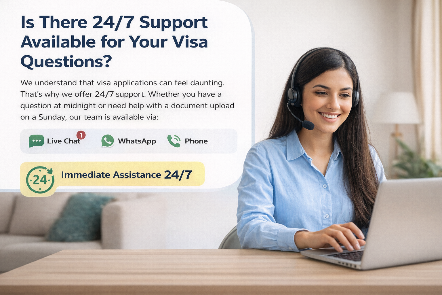 We understand that visa applications can feel daunting. That’s why we offer 24/7 Support. Whether you have a question at midnight or need help with a document upload on a Sunday, our team is available via Live Chat, WhatsApp, and Phone to provide immediate assistance.