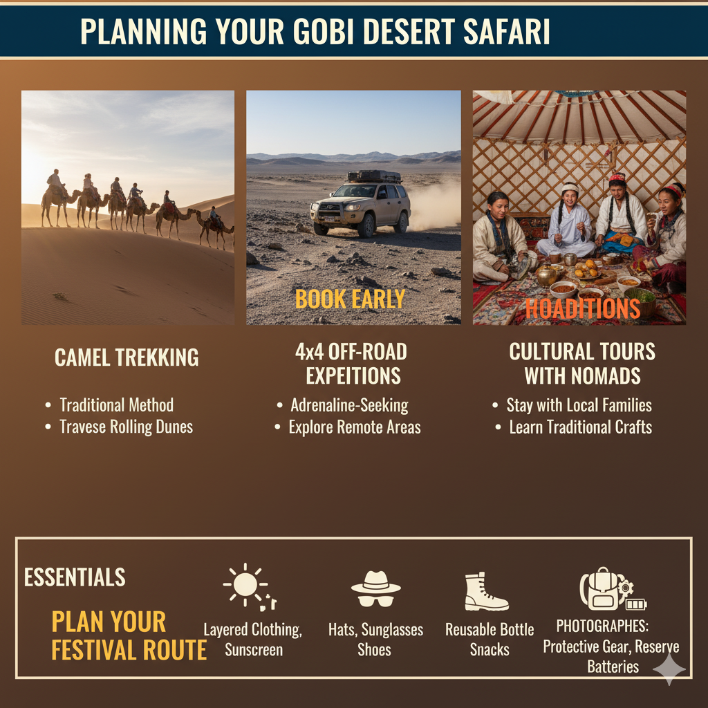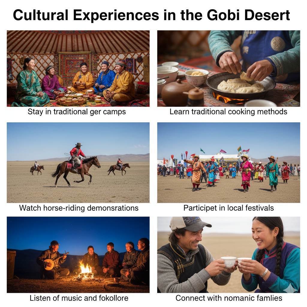 The Gobi Desert is not only about landscapes but also rich cultural interactions. Travelers can:
