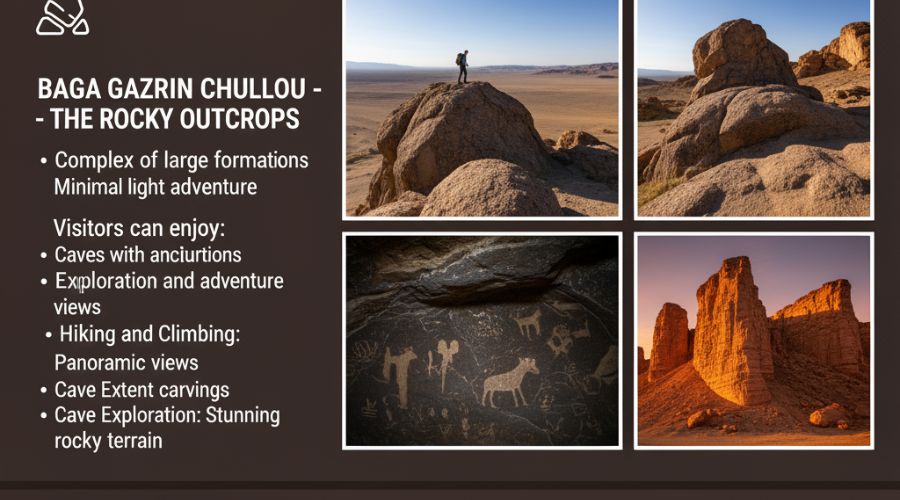 Baga Gazriin Chuluu is a complex of big rock-formations and caves, where one can also find a way of exploration and adventure. Visitors can enjoy: