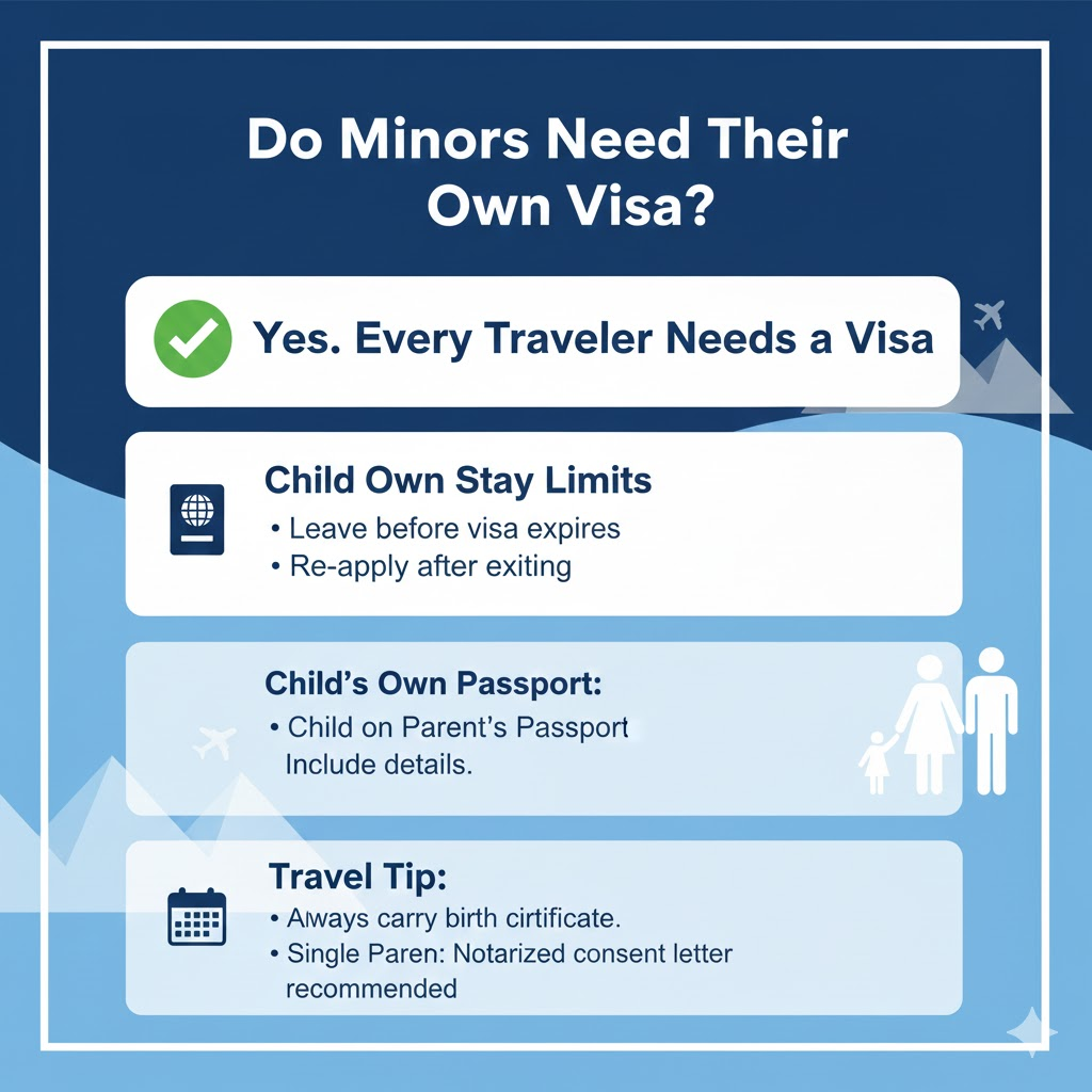 - Separate Entry: Because each person has their own visa document linked to their own passport, family members can arrive on different flights or different days if necessary, as long as they carry their specific printed visa.