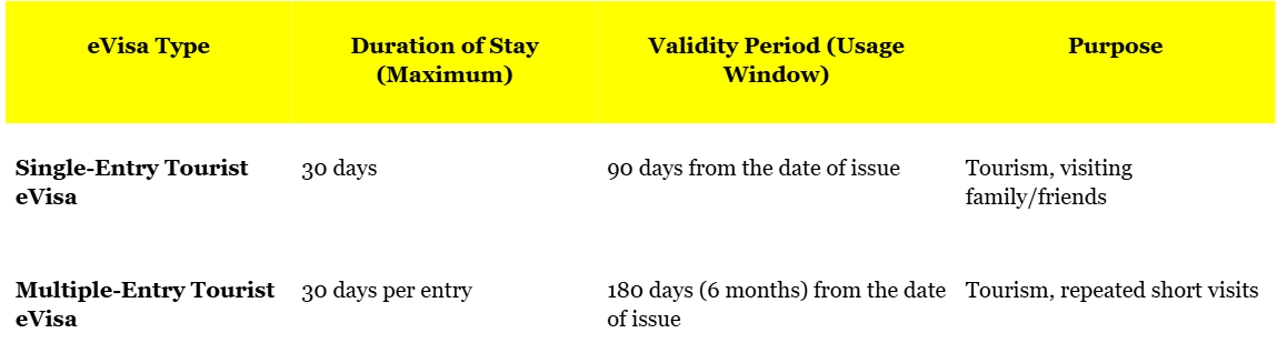 The Egyptian government offers two main types of tourist eVisas to eligible foreign nationals: