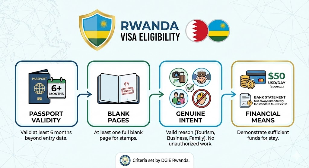 To successfully apply for a Rwanda visa, Bahraini applicants must meet specific criteria set by the Directorate General of Immigration and Emigration.