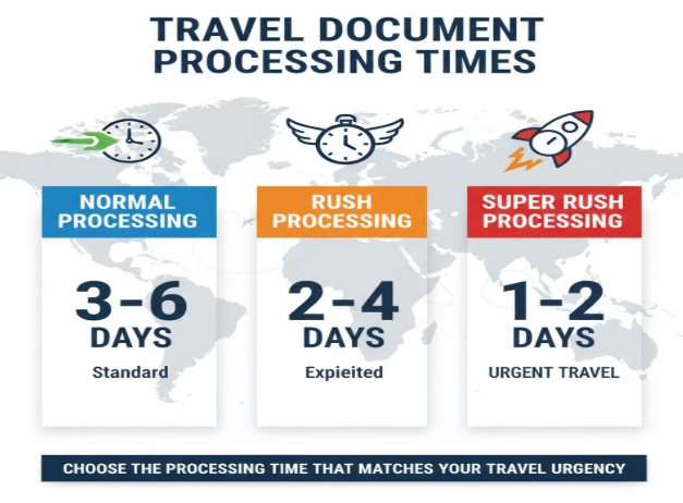 Choose the processing time that matches your travel urgency.