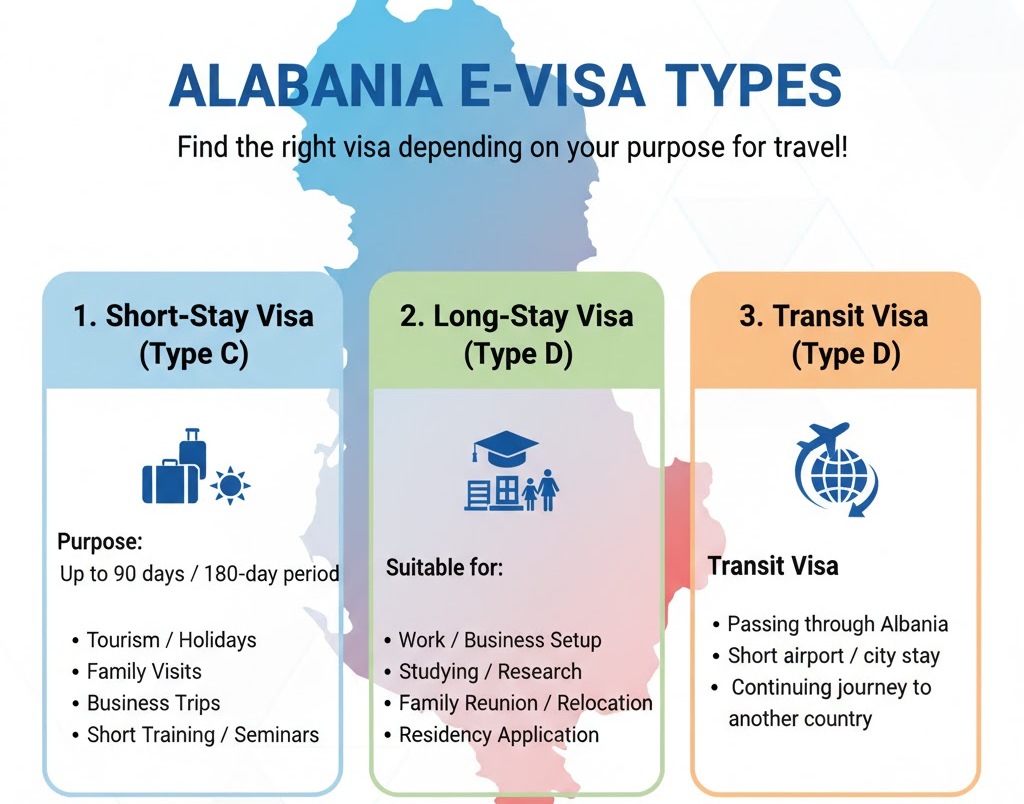 If you are passing through Albania to another country, you might need a transit visa. It allows you to stay for a short time in the airport or city before continuing your journey.