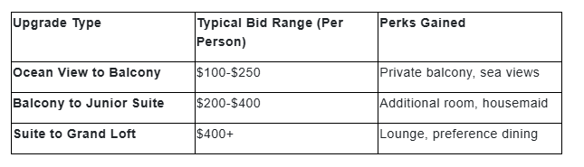 The Royal Caribbean Cruises Upgrade Policy enables RoyalUp bids and the booking up to the near-departure time, increasing the opportunities as inventory changes.