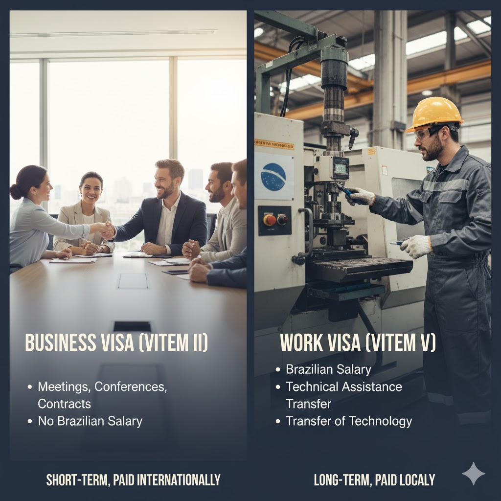 Search Intent Tip: If you are "working" in the sense of attending meetings but paid by your US/Home employer, you need a Business Visa. If you are fixing a machine and getting paid by the Brazilian client, you may need a Technical Work Visa.