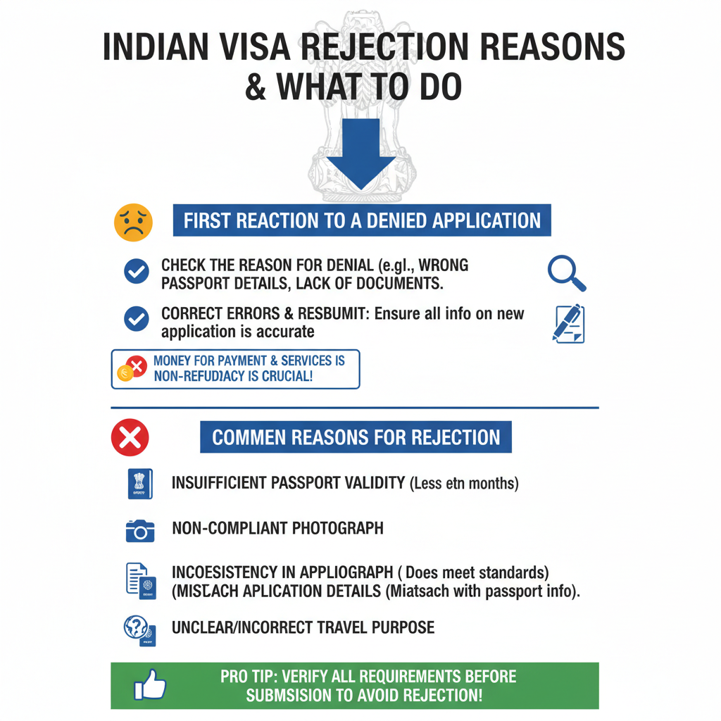 Check the reason for denial given (e.g., wrong passport details, lack of documents).