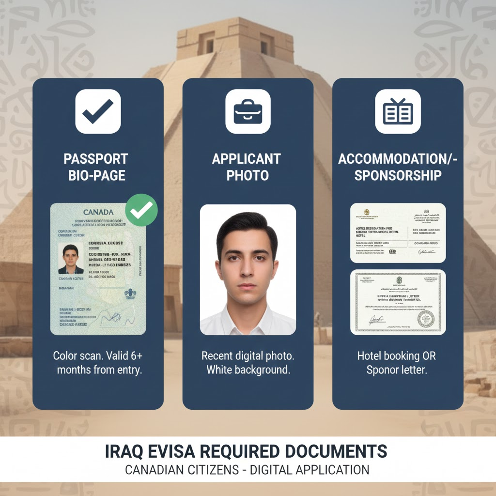 The eVisa application process is entirely digital. Canadian citizens must upload clear, high-resolution digital copies of these Required Documents for Iraq eVisa application: