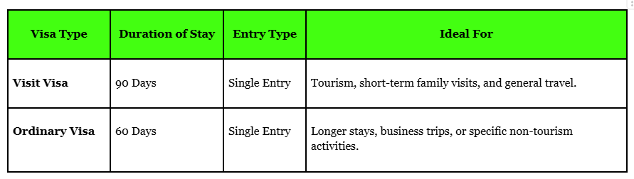 The Iraqi eVisa system typically offers various categories depending on the purpose and duration of stay. The most common options include: