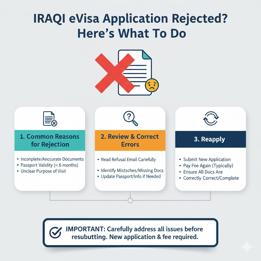 If rejected, you must carefully read the refusal email, correct all errors (update documents, fix inconsistent information), and then reapply. Note that a new application and fee are typically required for resubmission.