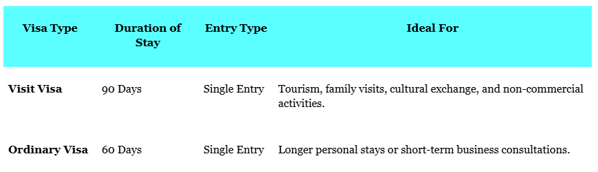 Based on your travel purpose and intended duration of stay, the Iraq eVisa system offers multiple choices. Common visa types and their validity periods are: