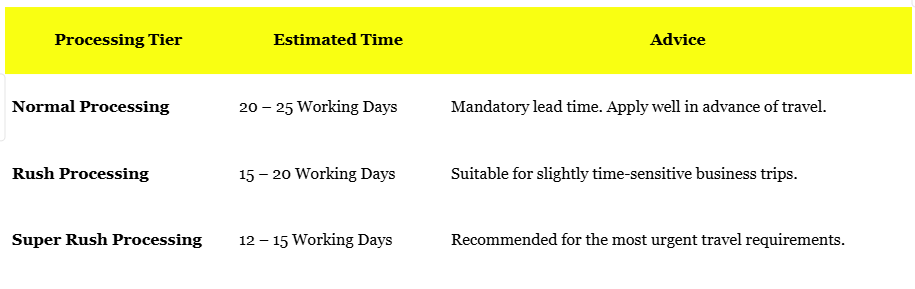 - Emergency Service: Critical business travel can be approved in as little as 12–24 hours.