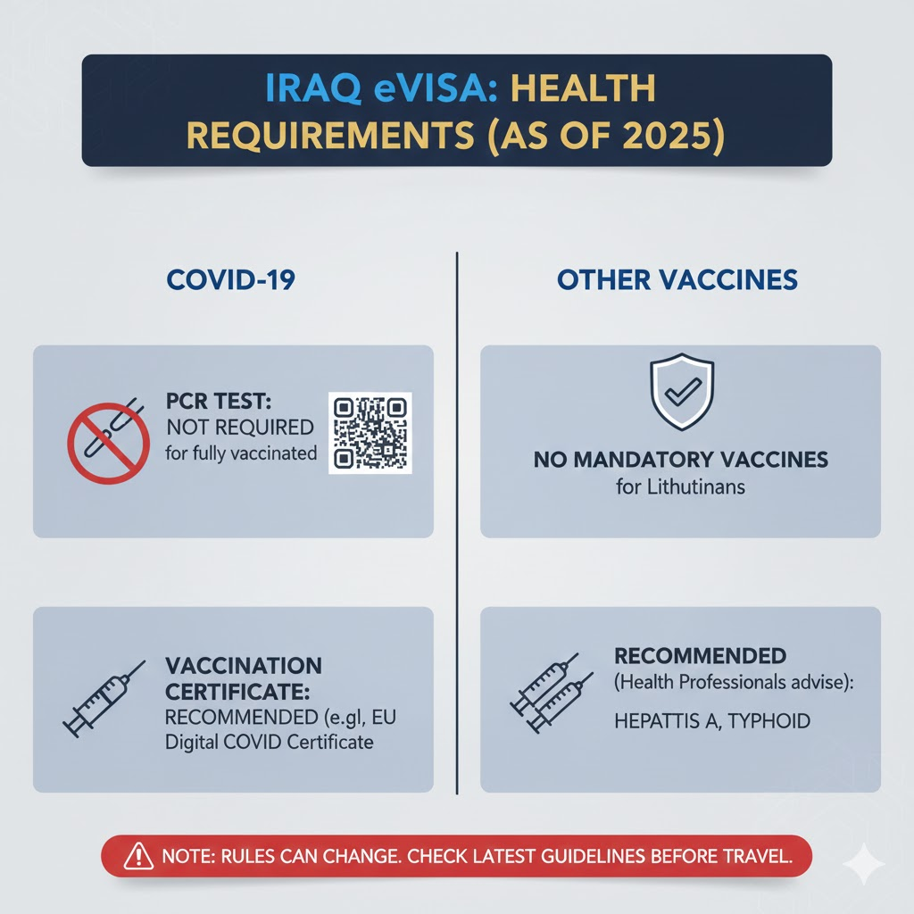 - Advice: Even if you have personal travel insurance from Lithuania, you often still need to pay the local Iraqi insurance fee as part of the visa cost.