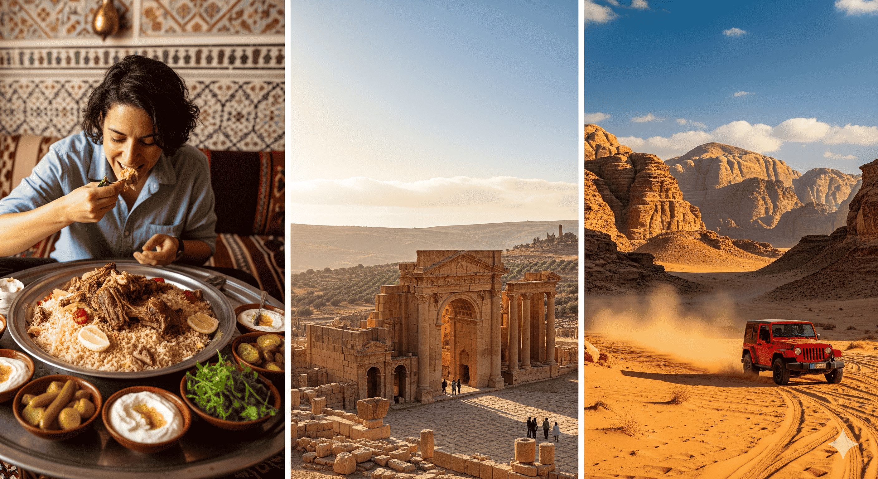 When you enter Jordan, the adventure indeed starts. Middle East culture is usually the home that brings comfort but at the same time amazed by the unique treasures Jordan has to offer. It could be enjoying the best of the Jordanian cuisine such as mansaf, the old Roman ruins in Jerash or a jeep ride through the golden sands of Wadi Rum, there is a story behind every part of Jordan.