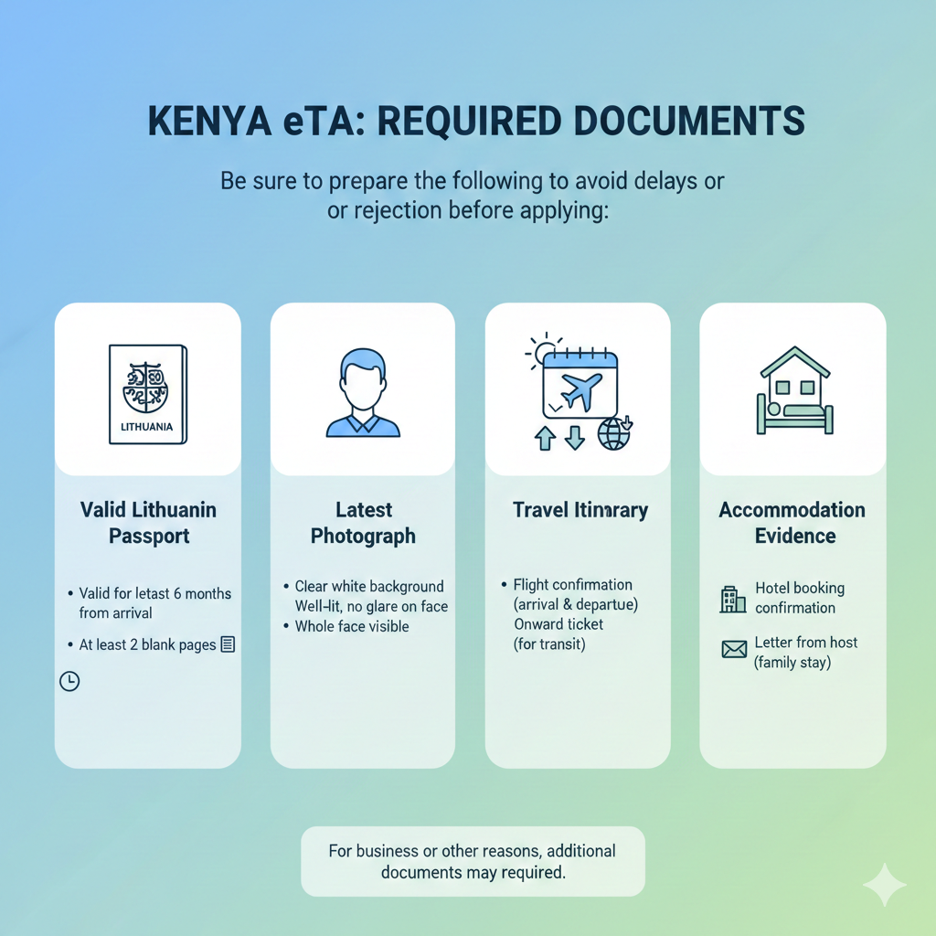Traveling from Lithuania to Kenya has become far simpler thanks to the Kenya eTA, an online travel authorization that removes the need for in-person appointments. Whether youβre planning a relaxing safari holiday, a short business trip, or a transit stopover, the Kenya eTA offers a convenient and streamlined experience for Lithuanian citizens. This guide walks you through entry rules, fees, processing times, required documents, rejection reasons, and moreβso you can apply confidently and avoid delays.