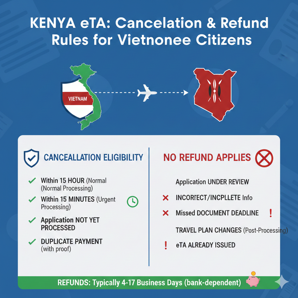 Cancellation rules for the Kenya eTA are time-sensitive: