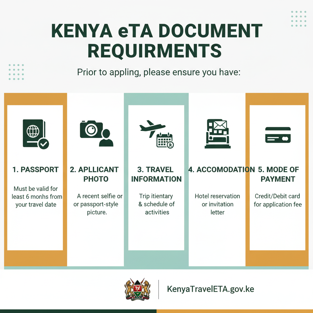 Kenya eTA (Electronic Travel Authorisation) is an e-travel authorisation that enables tourists, business people and transits to travel to Kenya. It also eliminates the old visa system and makes the process fast and enables the traveler to apply anywhere across the globe without having to visit an embassy.
