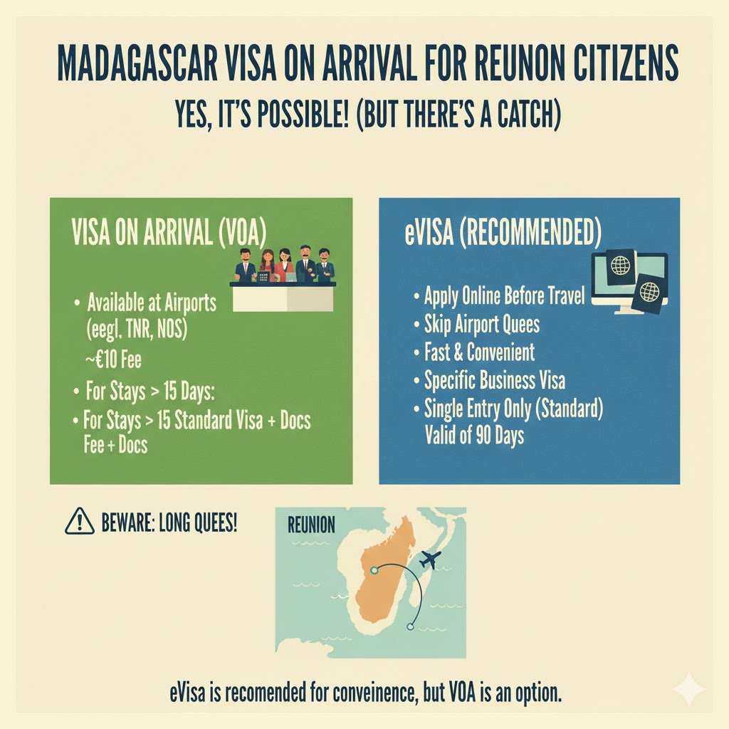 Since flights between Reunion and Madagascar are short and frequent, last-minute trips are common. If you book a spontaneous trip for this weekend, the Visa on Arrival might be your safest bet if the eVisa won't be ready in time.