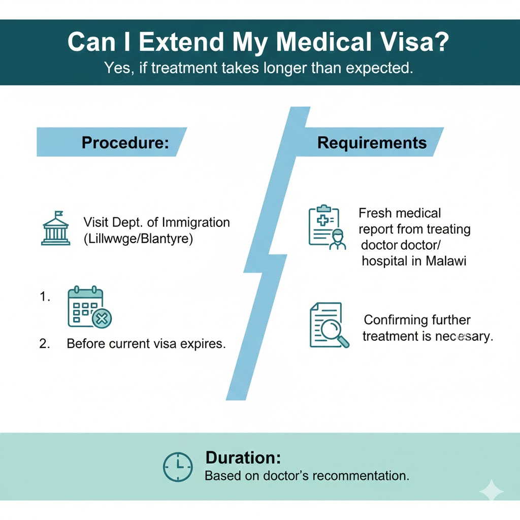 - Requirements: You will need to provide a fresh medical report from your treating doctor or hospital in Malawi confirming that further treatment is necessary.