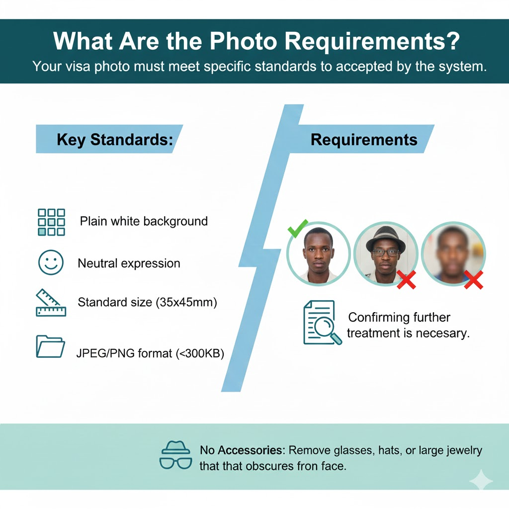 - No Accessories: Remove glasses, hats, or large jewelry that obscures the face.