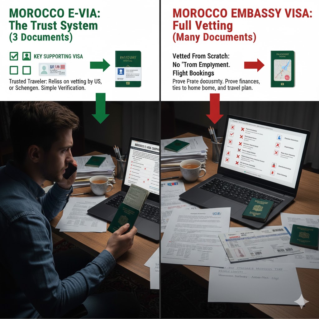 Your approved e-Visa gets you on the plane, but the immigration officer in Morocco (likely at Casablanca) makes the final decision. You must have this "arrival pack" in your hand luggage (never in your checked baggage).