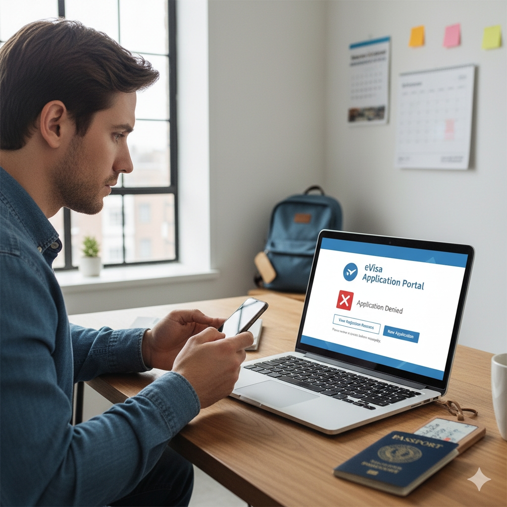 Yes â if your eVisa application is rejected, you can typically reapply. According to a guideline: âIf your eVisa application gets denied, you will be informed mostly through email. You might need to apply for a sticker visa or make the necessary corrections and apply again.â