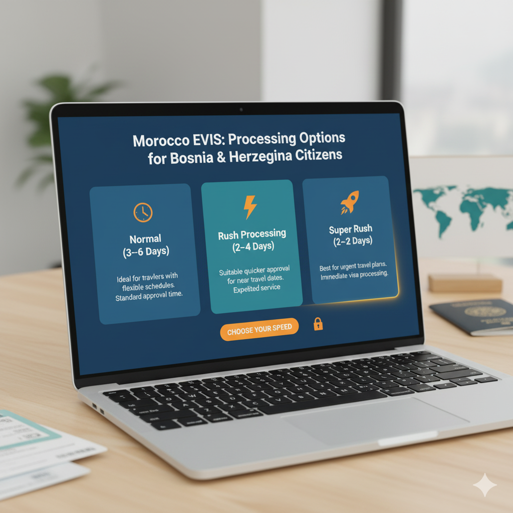 Regarding pricing for the Morocco eVisa for Bosnia and Herzegovina nationals: the exact figure can vary depending on nationality and processing speed. According to one recent guide, the standard Morocco eVisa fee depending for many nationalities, with faster processing options costing more. While I couldn't find a published fee specific solely for Bosnia and Herzegovina nationals in the sources I reviewed, the above range gives you a ballpark. I strongly recommend checking the guidance shortly before applying so you know the exact requirement.