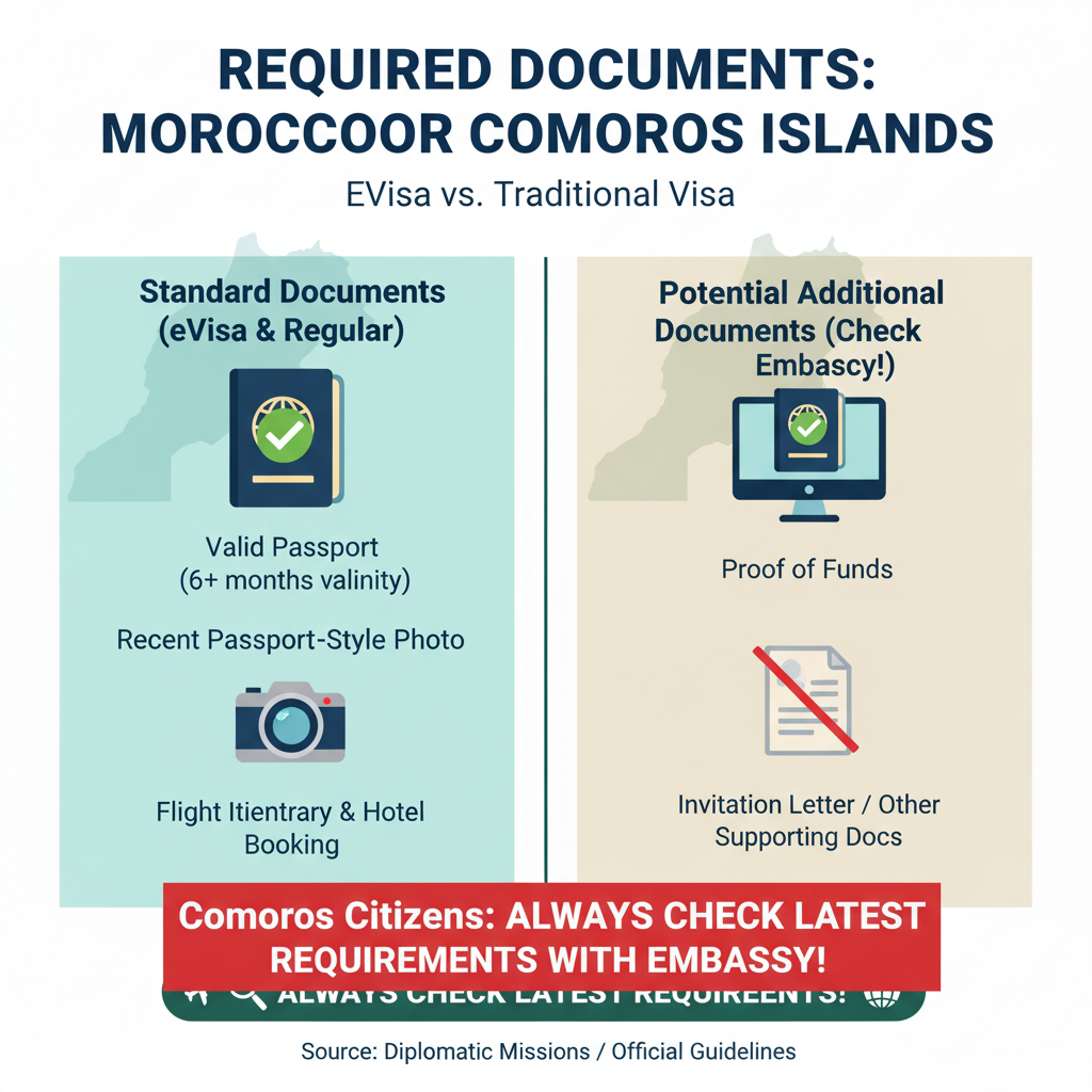 Since the case of Comoros nationals may not fall under the straightforward eVisa eligibility, you might be asked for extra documents by a Moroccan diplomatic mission. Always check with the local representation.