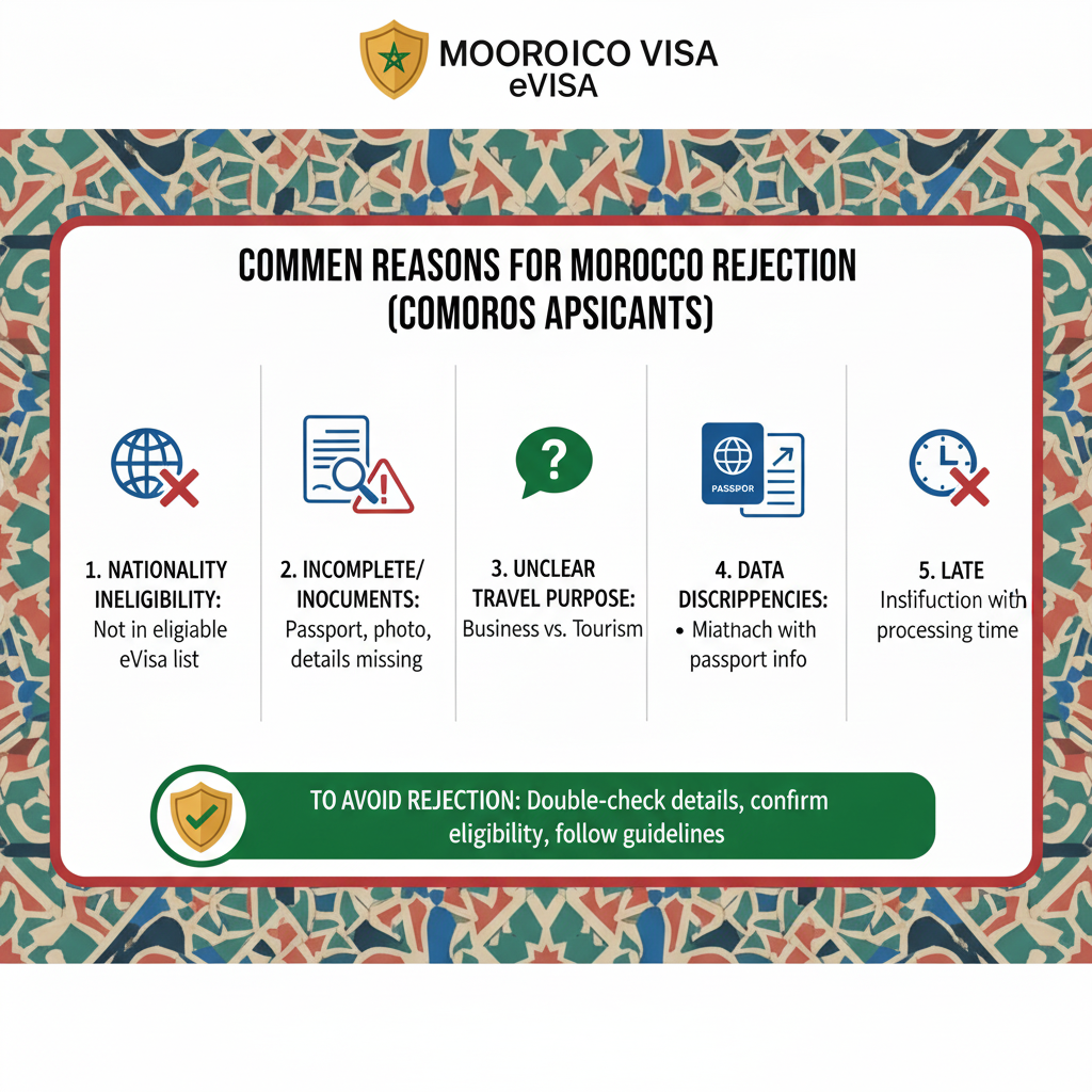 To avoid rejection: double-check all details, ensure you meet the eligibility rules, and follow any nationality-specific advice for Comoros travellers.