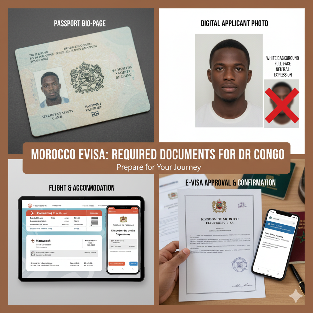 For the Morocco eVisa for Democratic Republic of the Congo you will generally need the following items. While required documents for Morocco eVisa can change, these are the standard ones:
