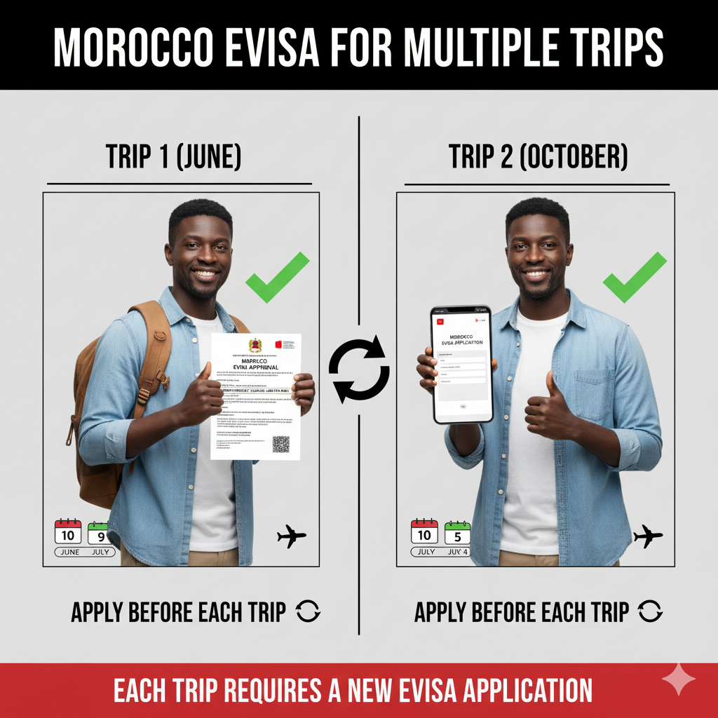 In summary: plan each trip as mostly independent and apply for a fresh Morocco eVisa for each visit, unless your travel pattern suggests the need for a different travel authorisation.