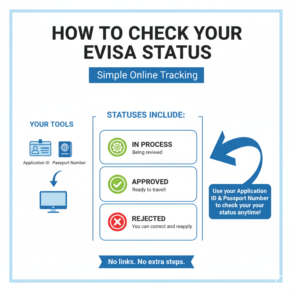 You can check your eVisa status anytime using your application ID and passport number.