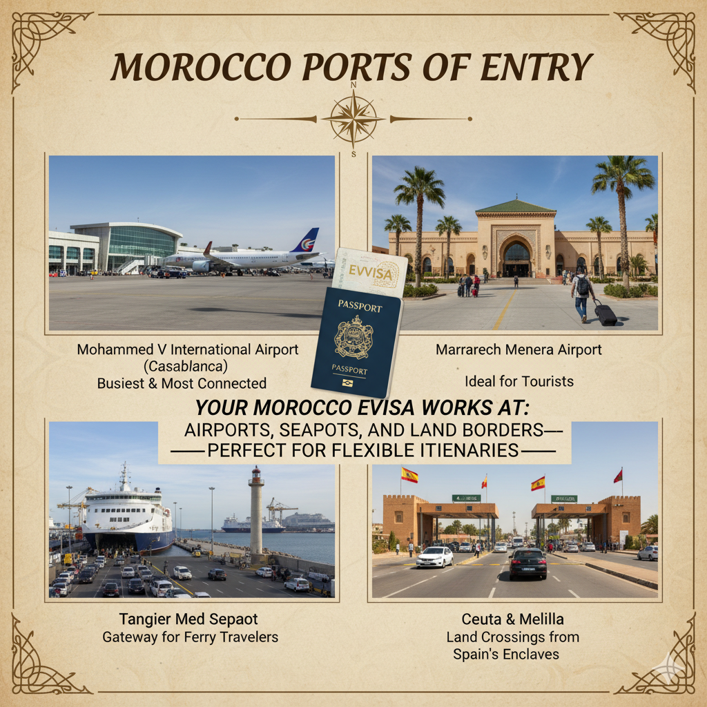 Your Morocco eVisa works at airports, seaports, and land bordersâperfect for flexible itineraries.