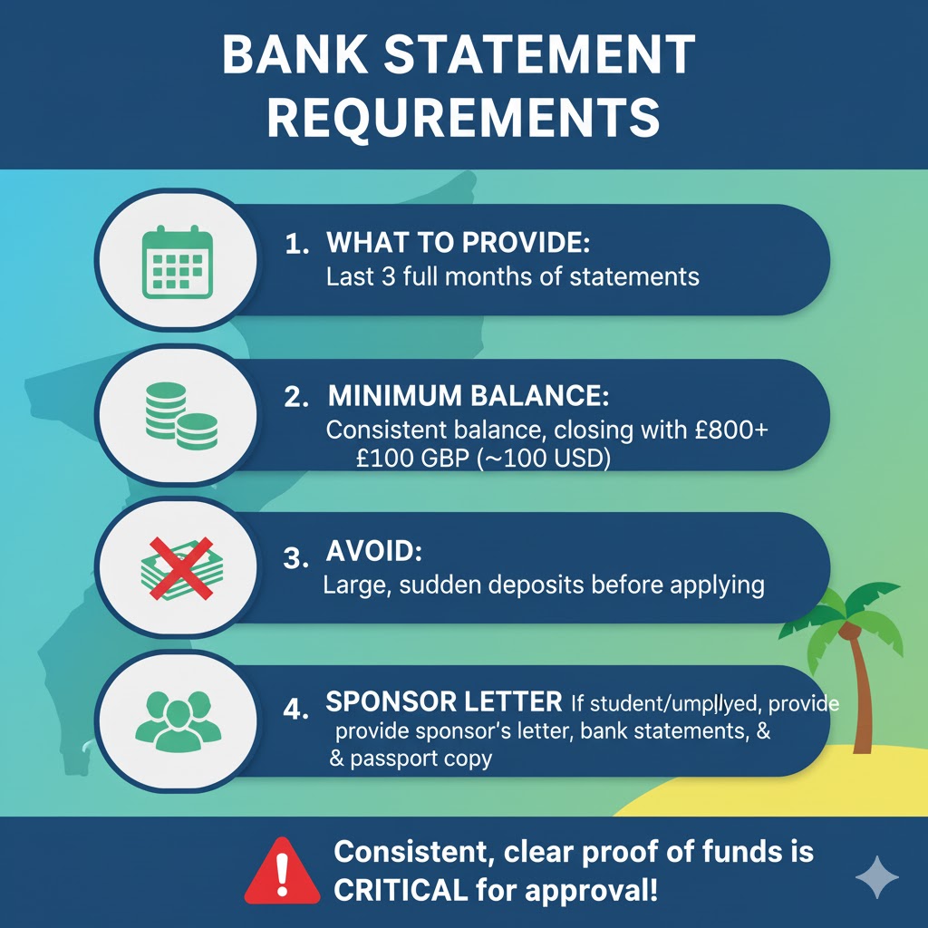 - The balance: The portal wants to see a consistent balance, with a closing balance of at least £800 GBP (the equivalent of $1,000 USD).
