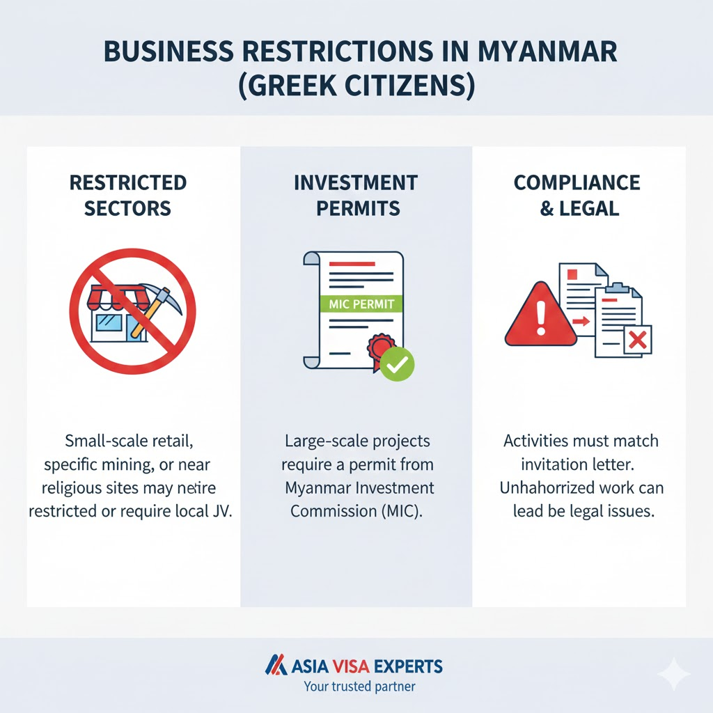 Are There Restrictions on the Types of Business Greek Citizens Can Conduct in Myanmar?