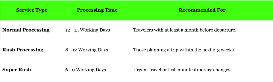One of the most frequent questions from French travelers involves the turnaround time. We offer three distinct processing tiers to accommodate different travel schedules:
