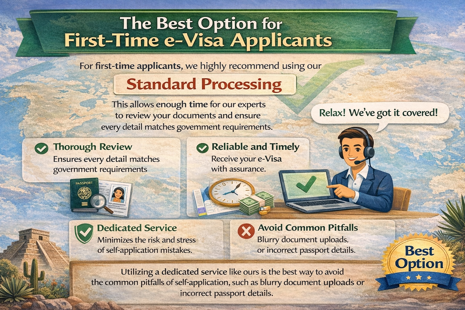 For first-time applicants, we highly recommend using our Standard Processing option. This allows enough time for our experts to review your documents and ensure every detail matches government requirements. Utilizing a dedicated service like ours is the best way to avoid the common pitfalls of self-application, such as blurry document uploads or incorrect passport details.