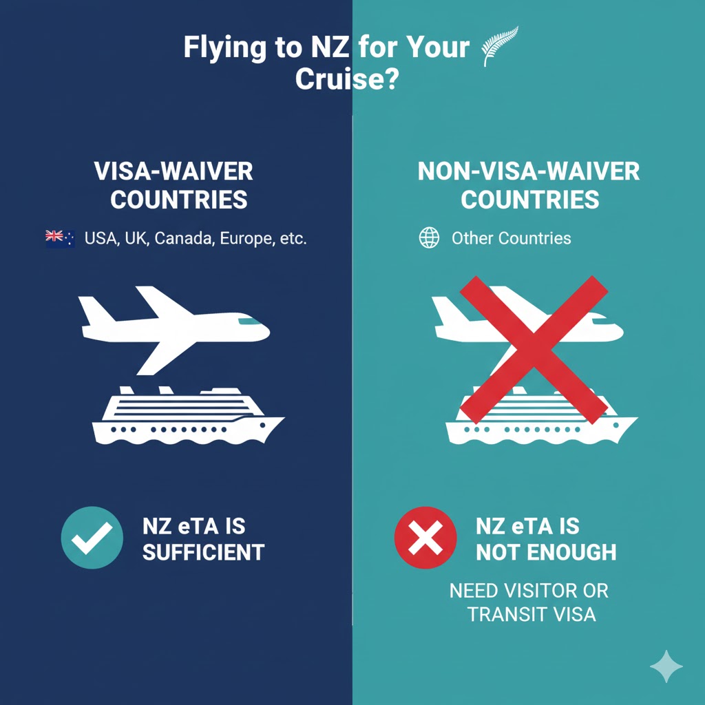 This is a vital scenario. If your travel involves flying into Auckland or another New Zealand airport to then board your cruise ship, the rules change slightly.