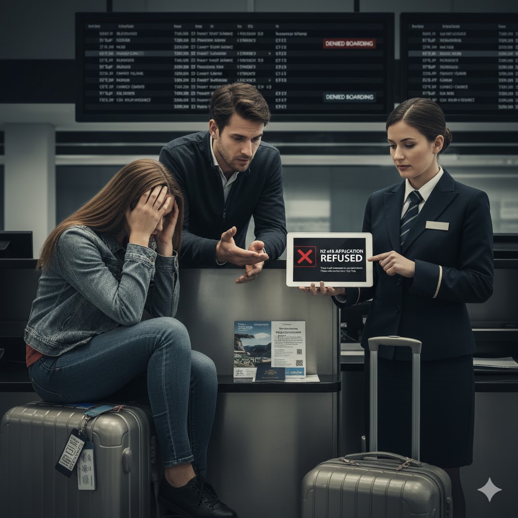A refusal is rare and usually happens for character or security reasons. If your NZ eTA application is refused, you cannot travel to New Zealand on your cruise. You will be denied boarding.