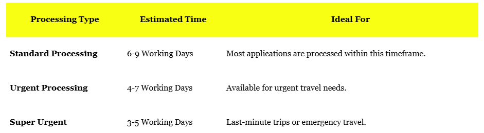 - Select Processing Time: Choose Standard, Urgent, or Super Urgent based on your departure date.