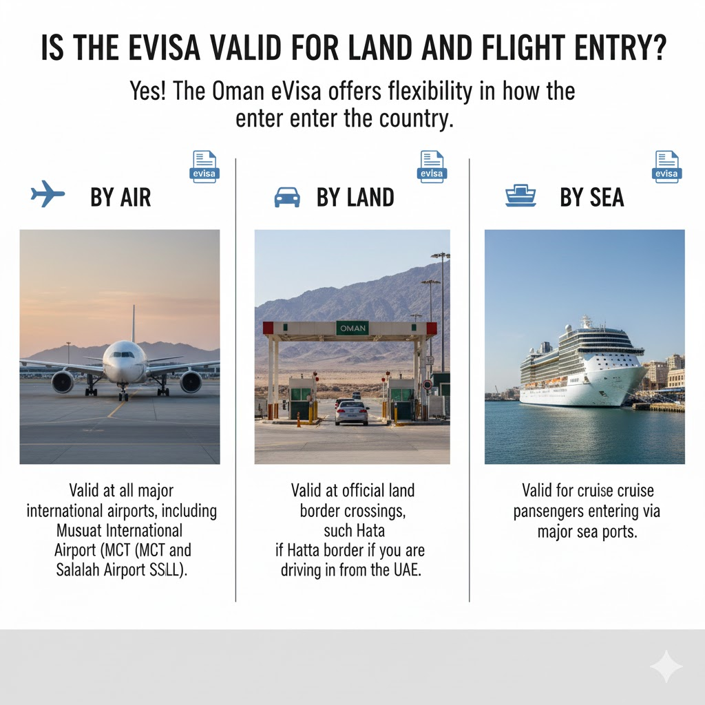 - By Air: Valid at all major international airports, including Muscat International Airport (MCT) and Salalah Airport (SLL).