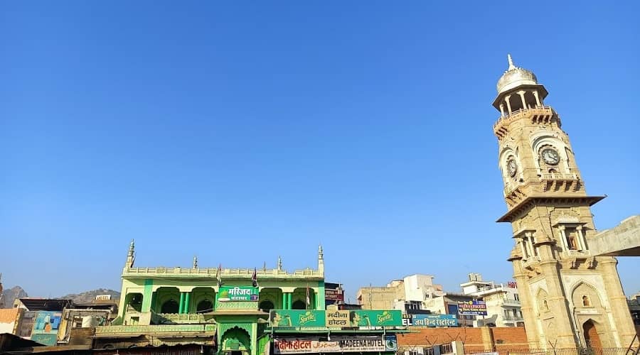 Near Ajmer Railway Station stands a clock tower that was built in 1887 AD and was originally known as the Victoria Jubilee Clock Tower. This clock tower serves as a local landmark of Ajmer city, and many people, taxis, and auto-rickshaws use it as a common pick-up and drop-off point.