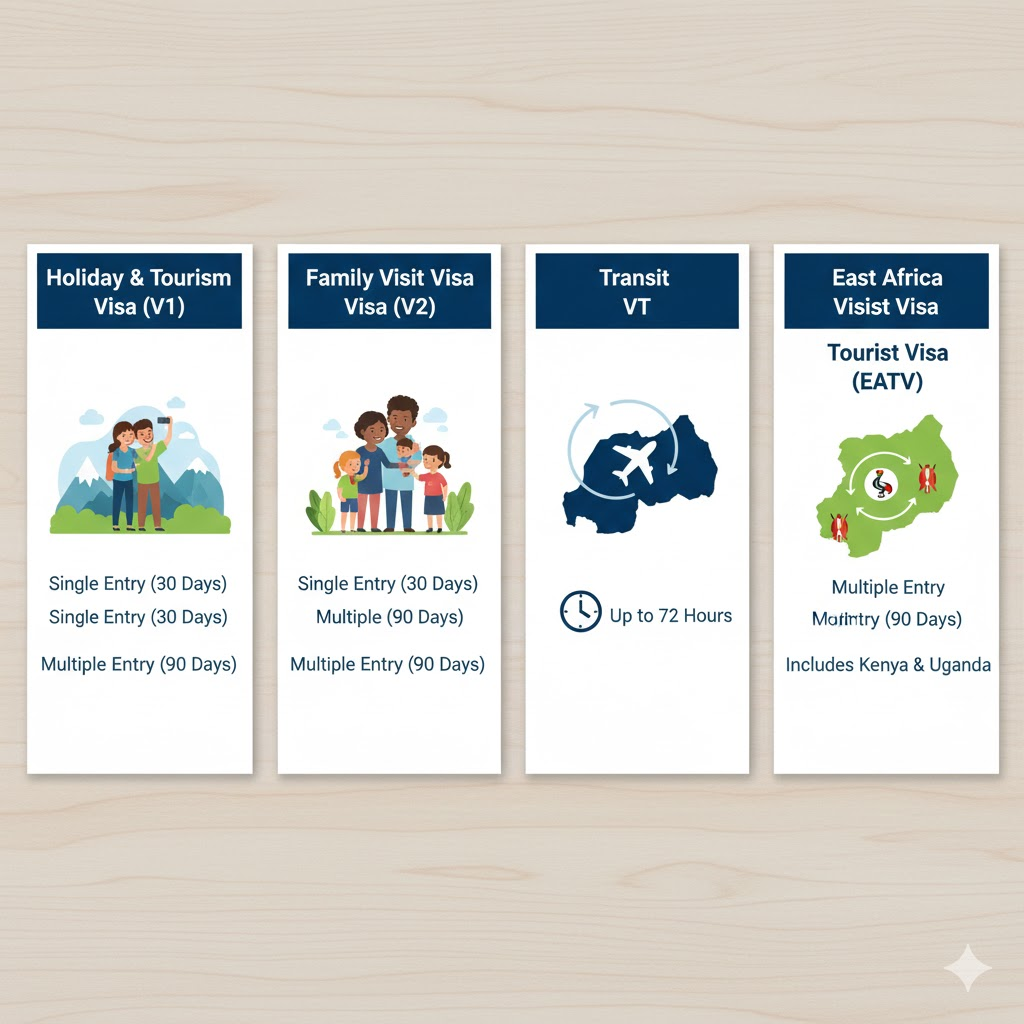 Rwanda offers various eVisa categories to suit different travel needs. Armenian citizens can apply for several Rwanda Visa Types depending on their purpose and duration of stay: