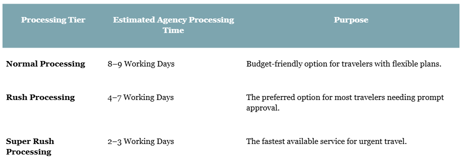 This is where private service agencies often offer an advantage by providing tiered processing options (for a service fee, explained below):