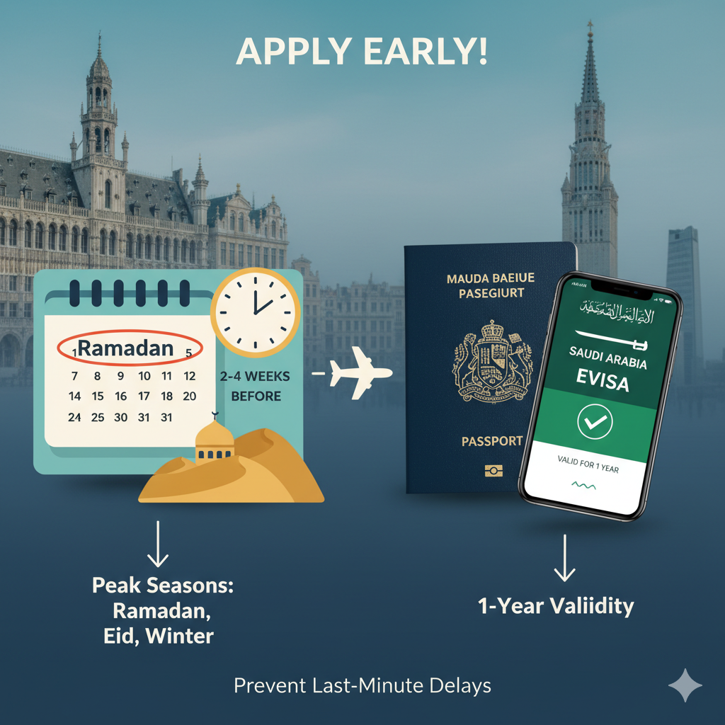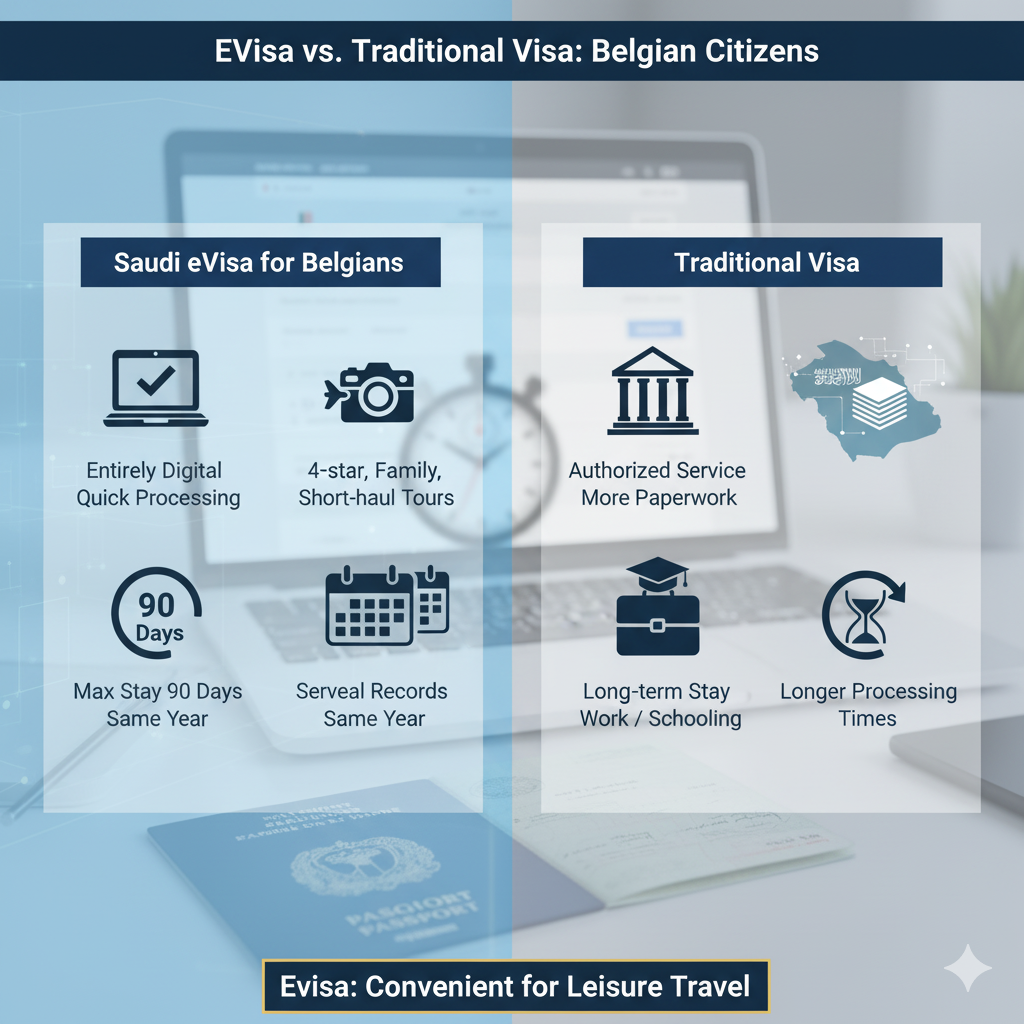 To the majority of the travelers in Belgium looking to visit Saudi Arabia as their leisure destination, the eVisa is the most convenient and convenint.