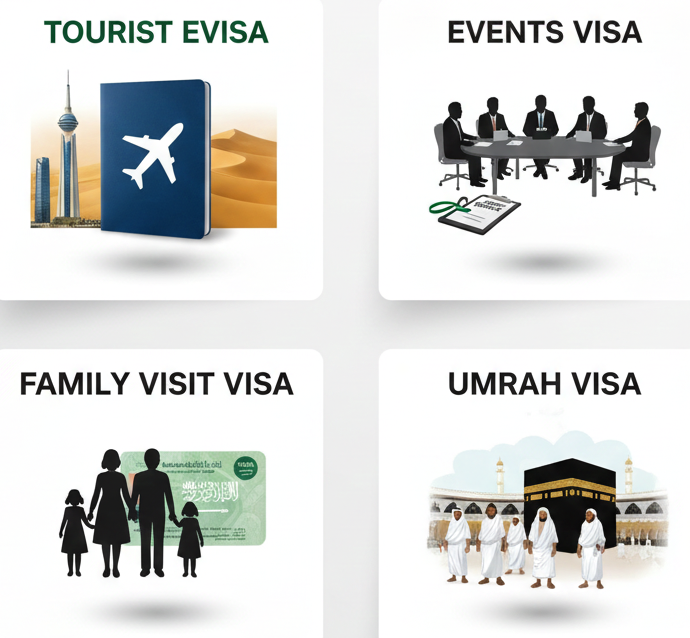 - Tourist eVisa: For leisure, sightseeing, Umrah (non-Hajj).