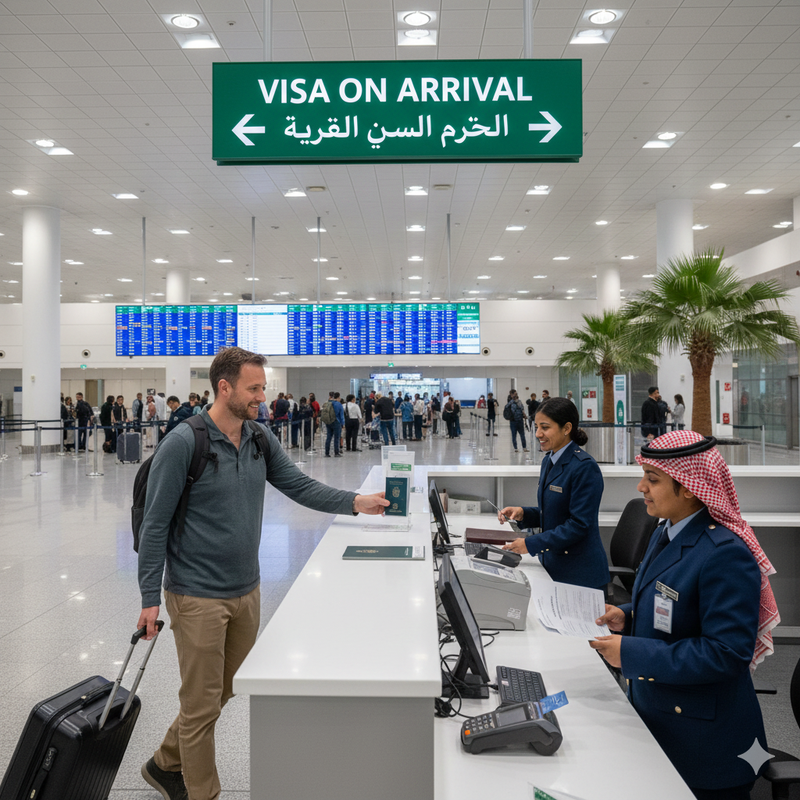 - Landing at a Visa-on-Arrival Airport: Arriving in Saudi Arabia at an airport that grants a tourist Visa-on-Arrival.