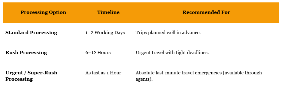 While the standard processing is quick (often less than 48 hours), applying several weeks before your intended travel date is always recommended. For guaranteed speed, agents offer the only path to the quickest options.