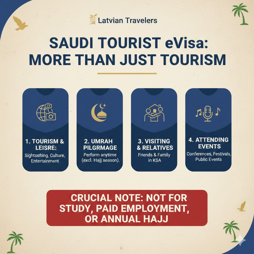 Crucial Note: The Tourist eVisa cannot be used for study, paid employment, or the annual Hajj pilgrimage.